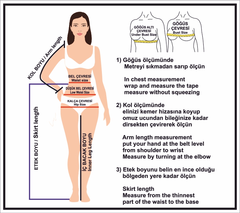 - Sol alttaki şekilde göreceğiniz gibi tüm fiziksel ölçülerinizi not almalısınız.